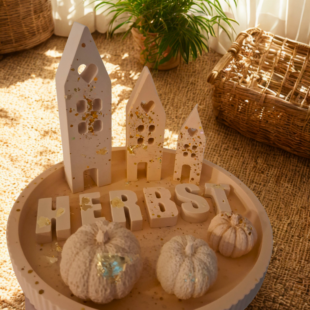 Dieses süße Set besteht aus 13 Teilen, enthält drei minimalistische Häuschen 🏠, die Buchstaben „HERBST“ ✨ und drei kleine Zierkürbisse 🎃inkl. runden Teller. Perfekt für Tisch, Regal oder Sideboard – bringt sofort warme Herbststimmung 🌞 in deine Räume. Mit goldenen Akzenten ✨ für einen modernen, natürlichen Look. 🍂✨️